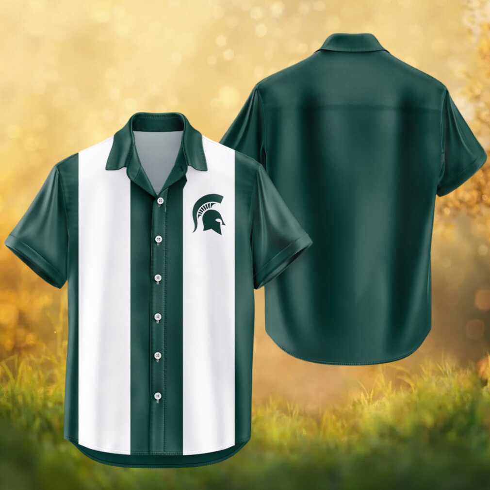 Michigan State Spartans NCAA Hunter Green White Striped Bowling Hawaiian Shirt