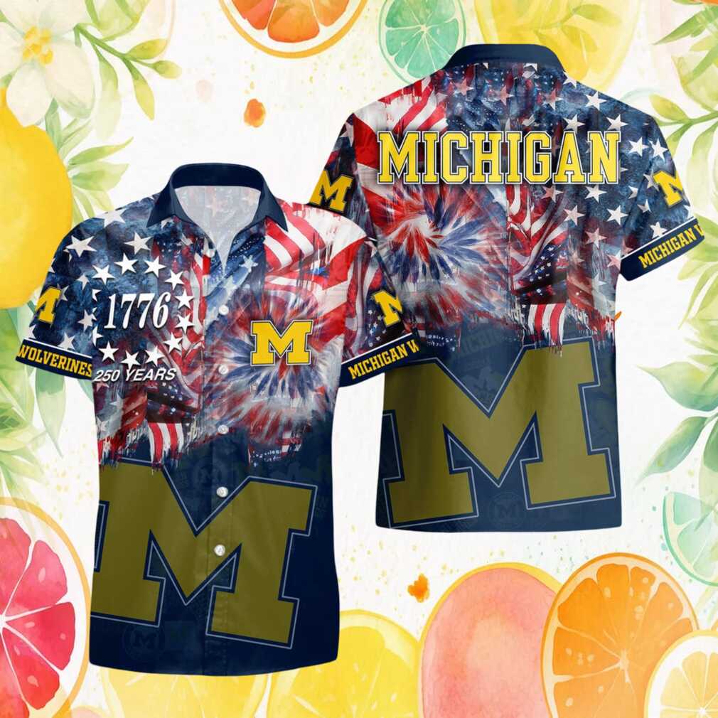 Michigan Wolverines 1776 250 Years Patriotic Floral Hawaiian Shirt