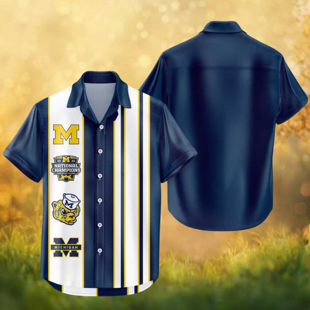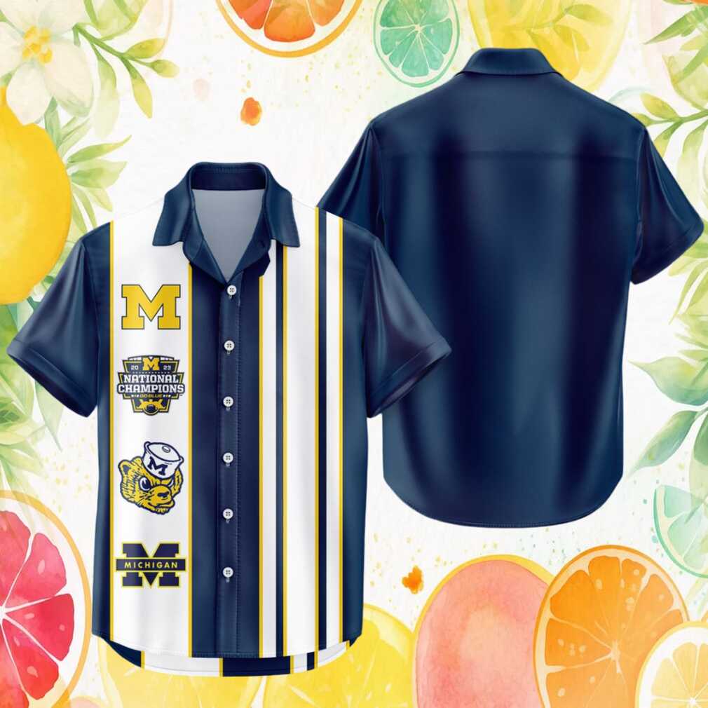 Michigan Wolverines NCAA National Champions Vertical Stripe Hawaiian Shirt