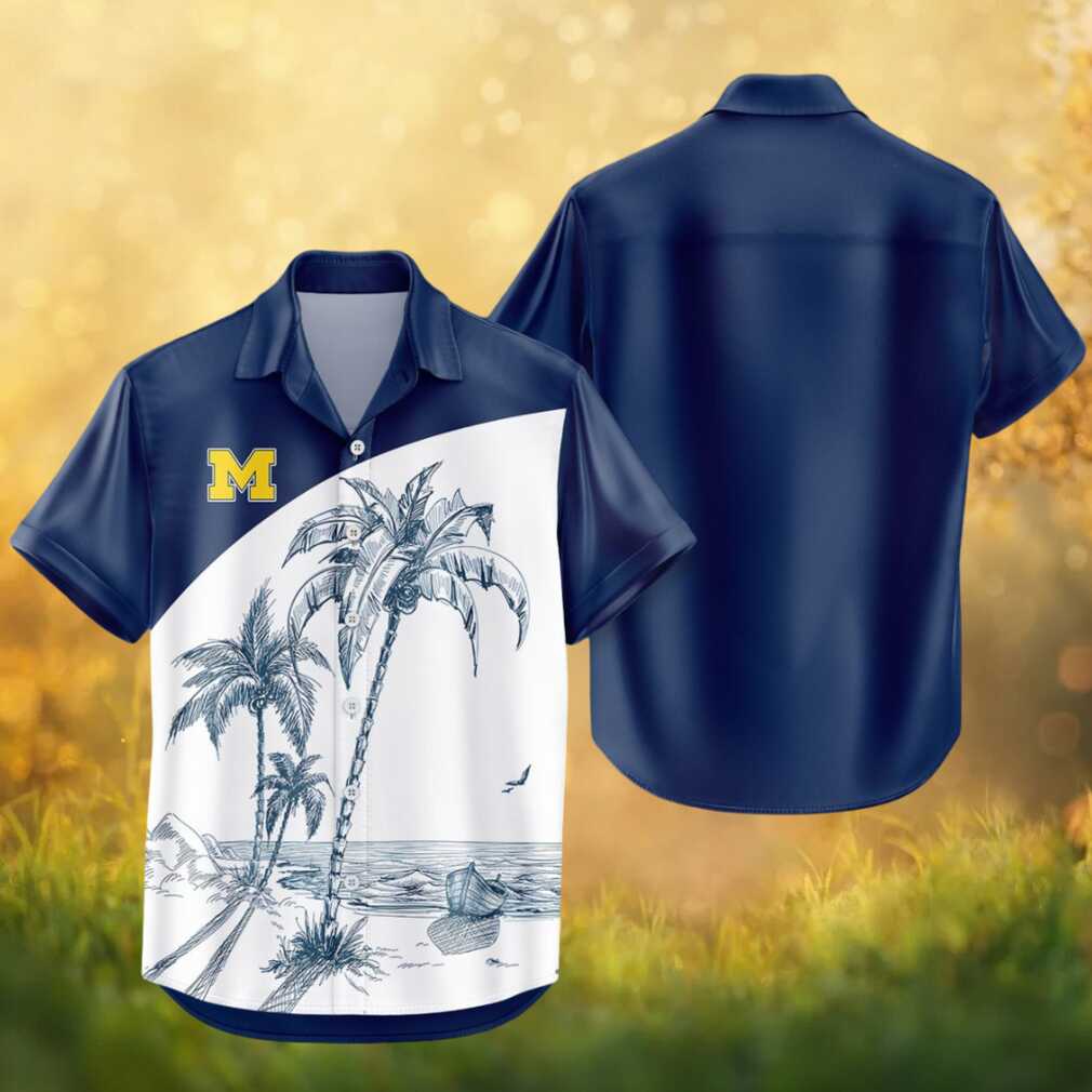 Michigan Wolverines NCAA Tropical Sketch Palm Tree Hawaiian Shirt
