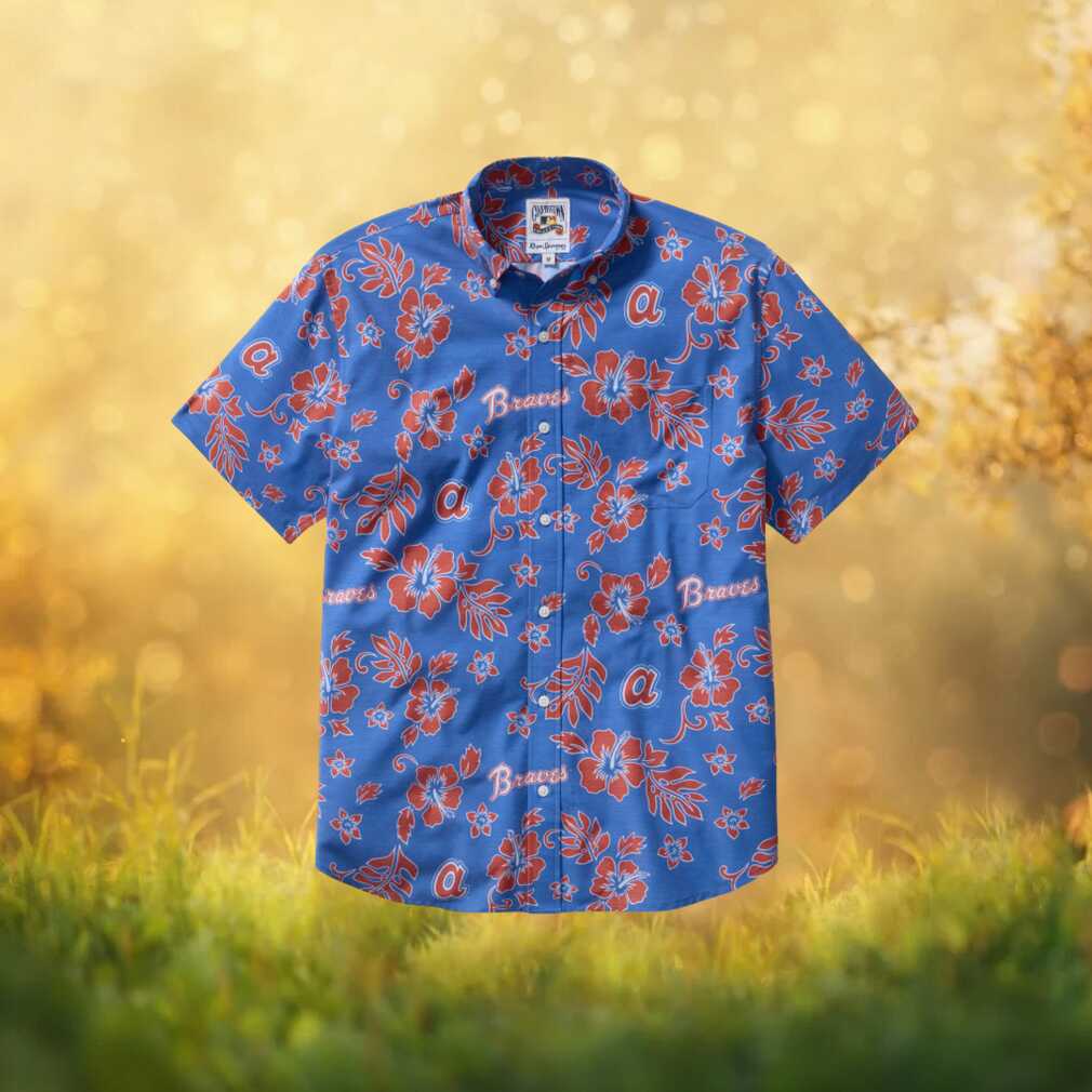 MLB Atlanta Braves Reyn Spooner Blue Ribbon Floral Hawaiian Shirt