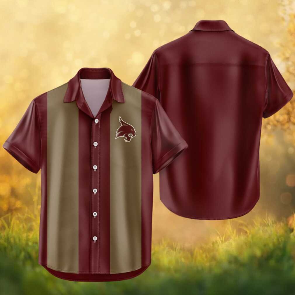 Montana State Bobcats NCAA Maroon Gold Striped Button Down Hawaiian Shirt