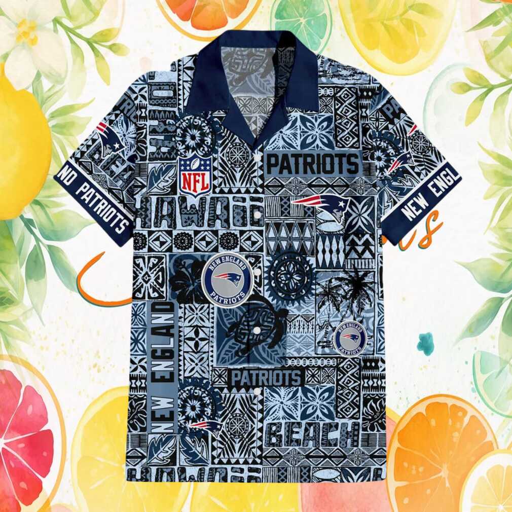 New England Patriots NFL Hawaiian Shirt Navy Tribal Tattoo Style Beach Button Down