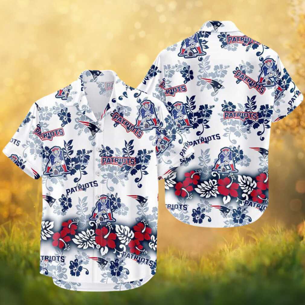 New England Patriots Tropical Hibiscus Floral White Navy Hawaiian Shirt