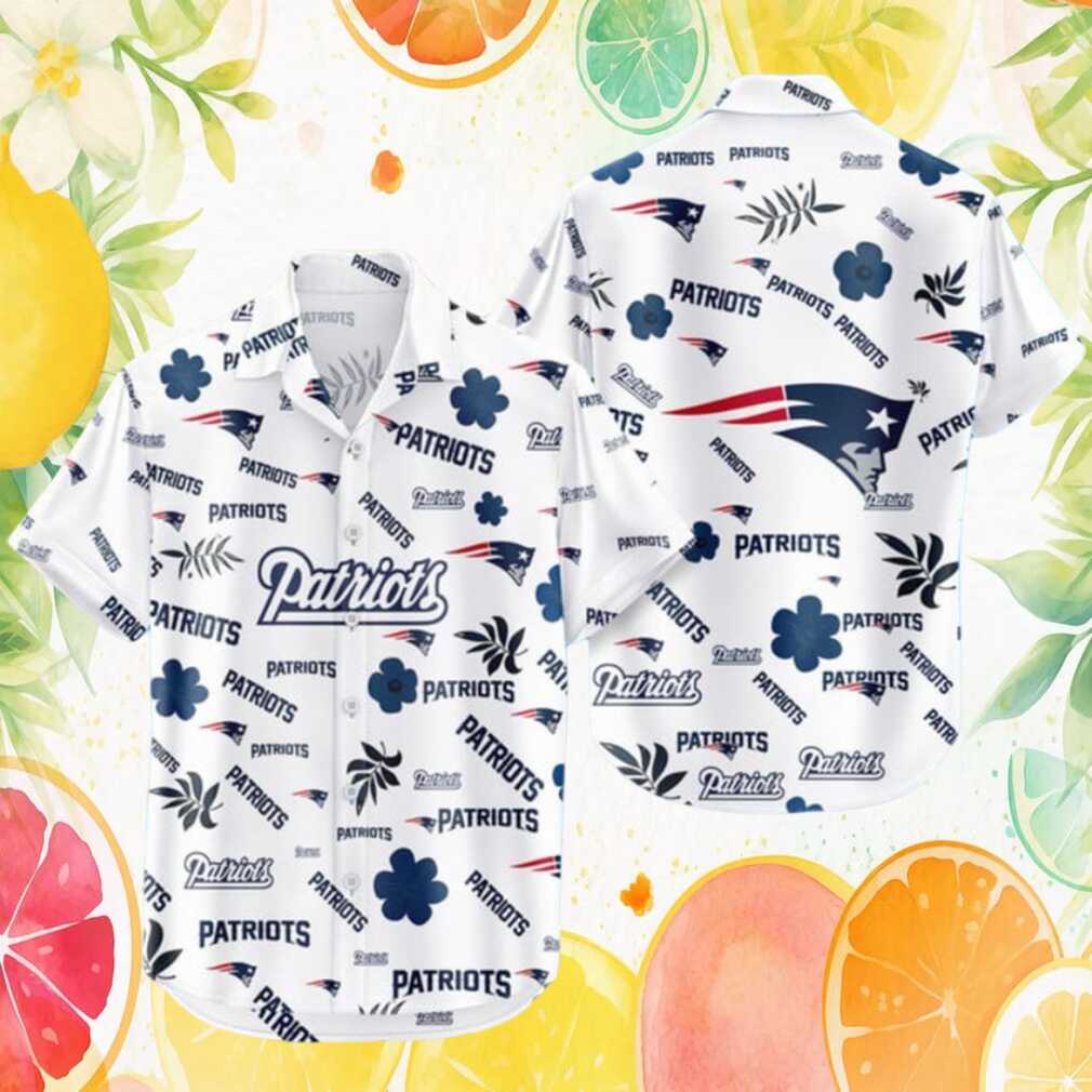 New England Patriots White All Over Print Logo NFL Hawaiian Shirt
