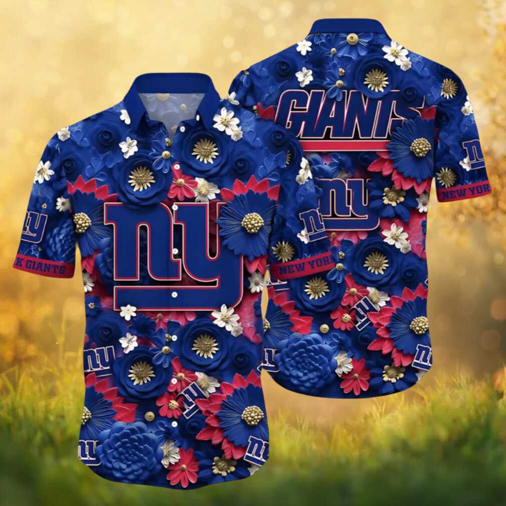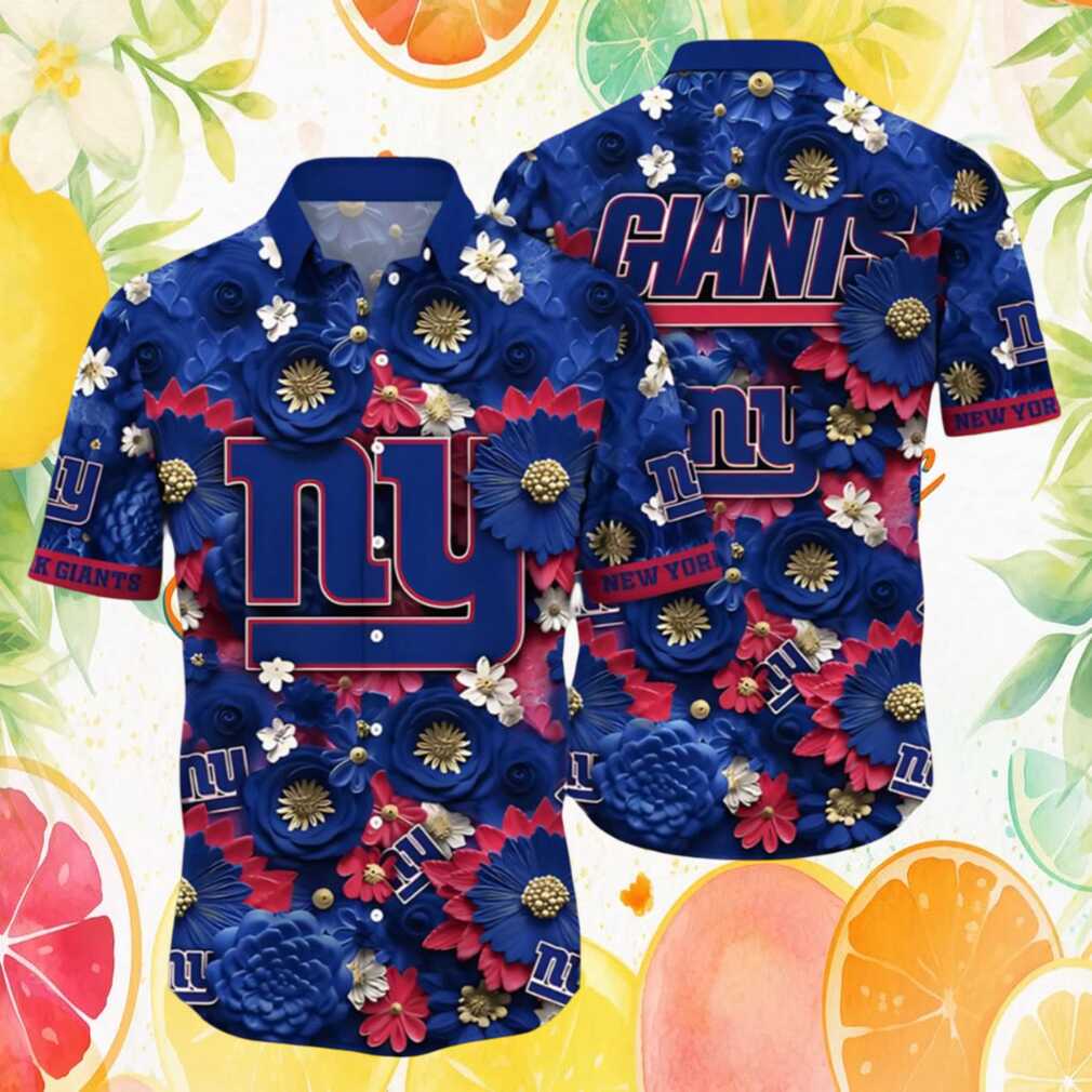 New York Giants 3D Floral Rose Pattern Blue Summer Hawaiian Shirt