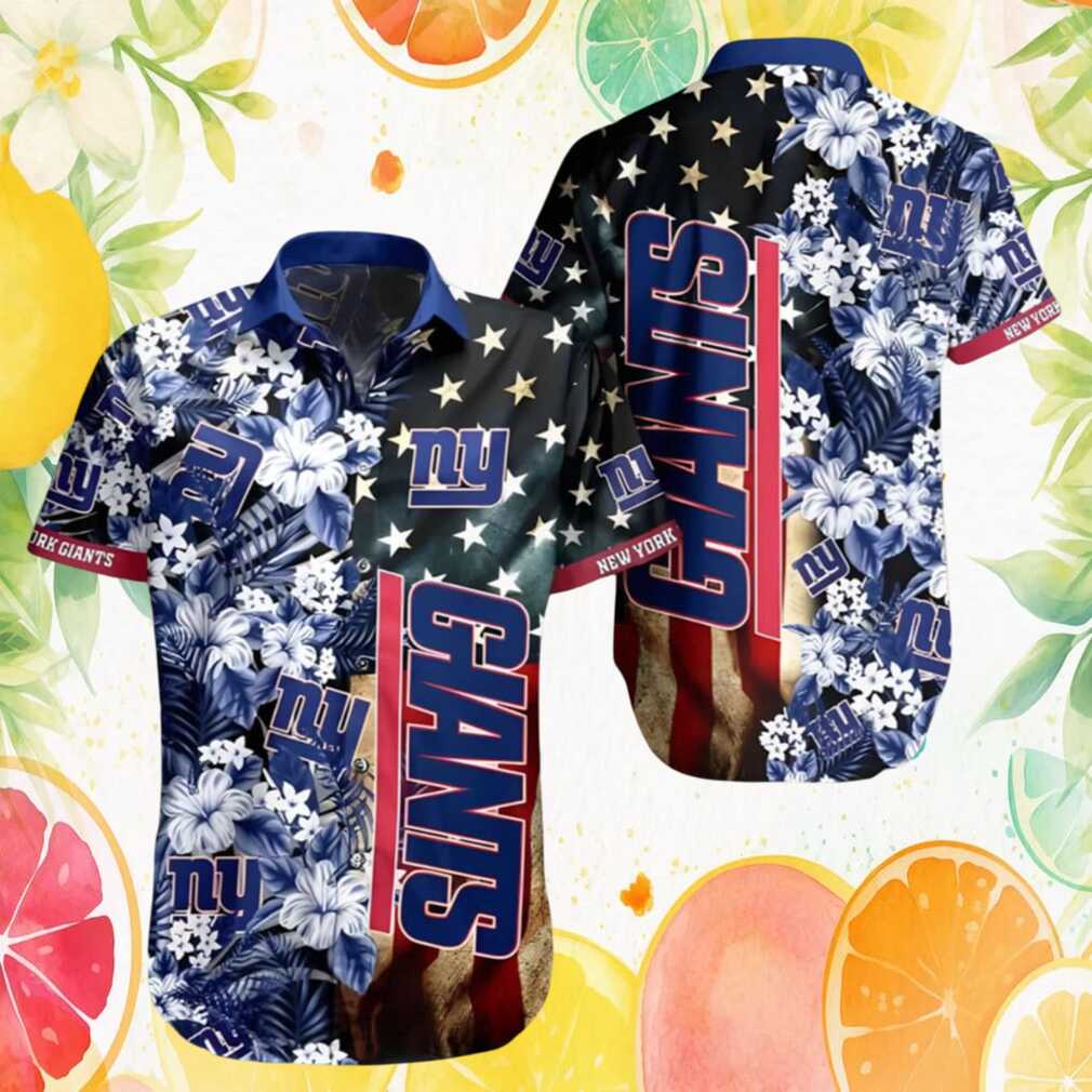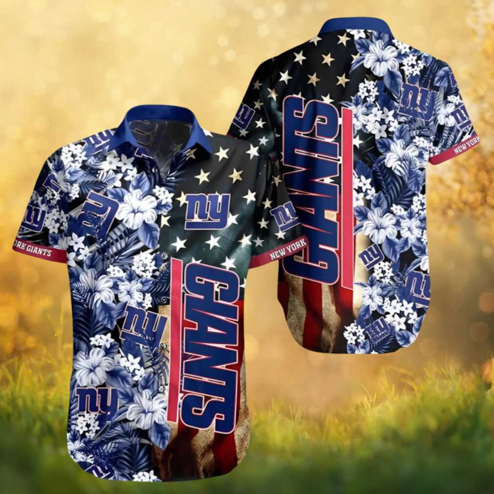 New York Giants Patriotic American Flag Floral Summer Button Up Hawaiian Shirt