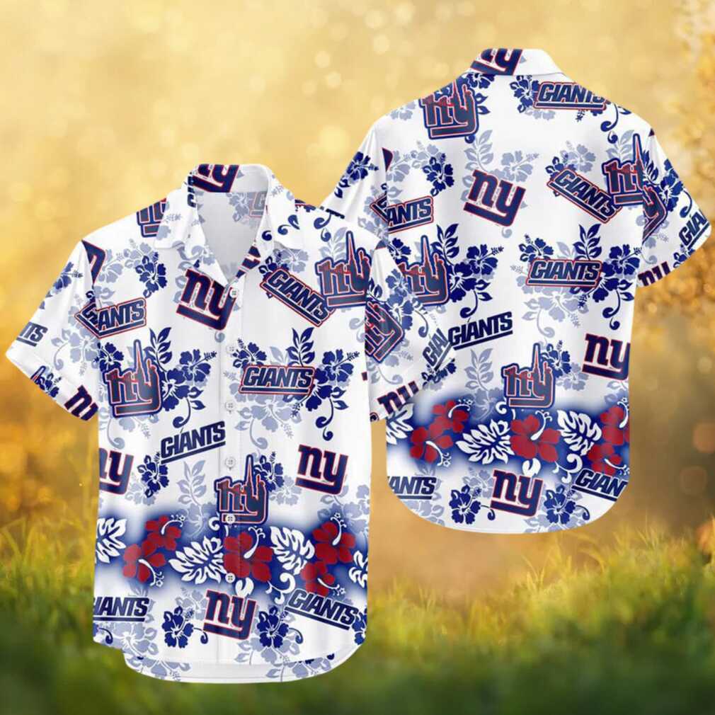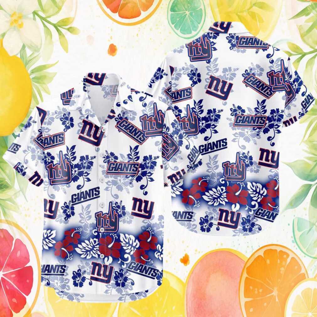 New York Giants Tropical Hibiscus Floral White Royal Blue Hawaiian Shirt