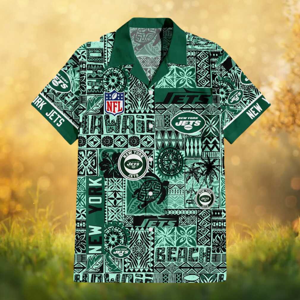 New York Jets NFL Hawaiian Shirt Green Tribal Polynesian Pattern Summer Beach Wear