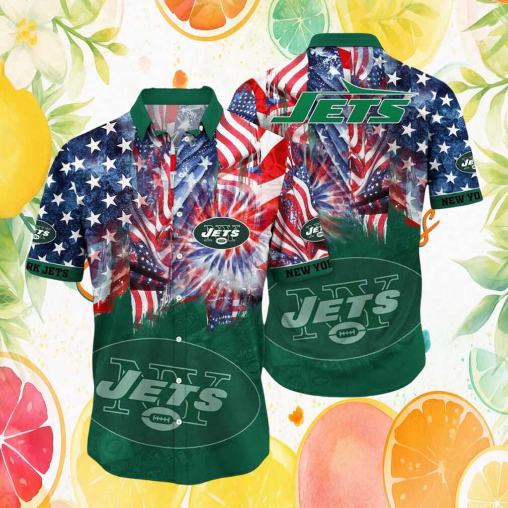 New York Jets Patriotic American Flag Fireworks Green Hawaiian Shirt