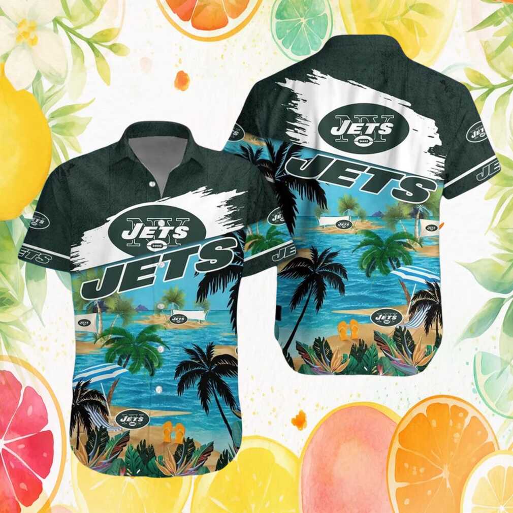 New York Jets Tropical Beach Island & Palms Green Hawaiian Shirt