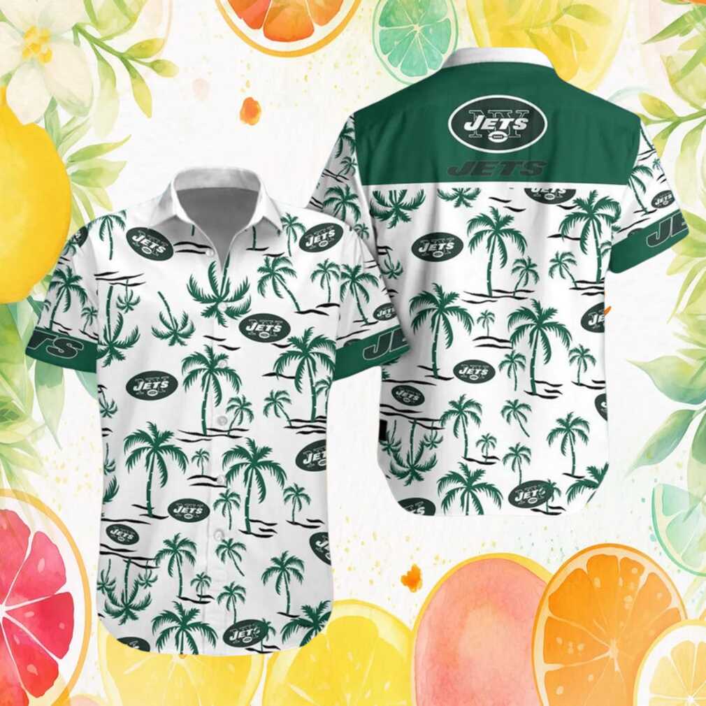 New York Jets White Tropical Palm Tree Summer Button Down Hawaiian Shirt