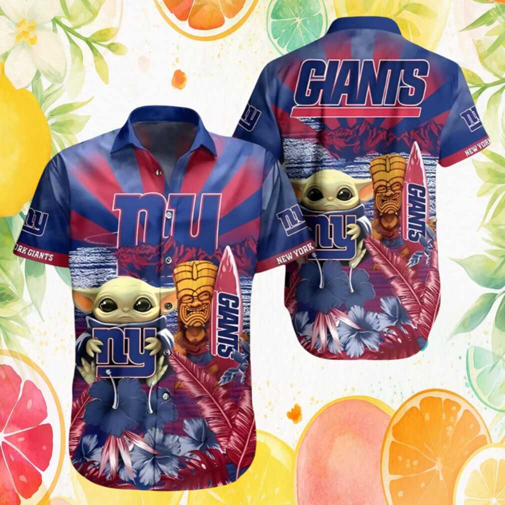 NY Giants Tiki Surf Baby Yoda Grogu Tropical Hawaiian Shirt