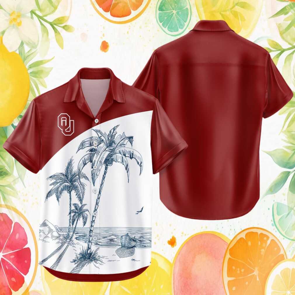 Oklahoma Sooners Crimson Palm Beach Sketch Hawaiian Shirt