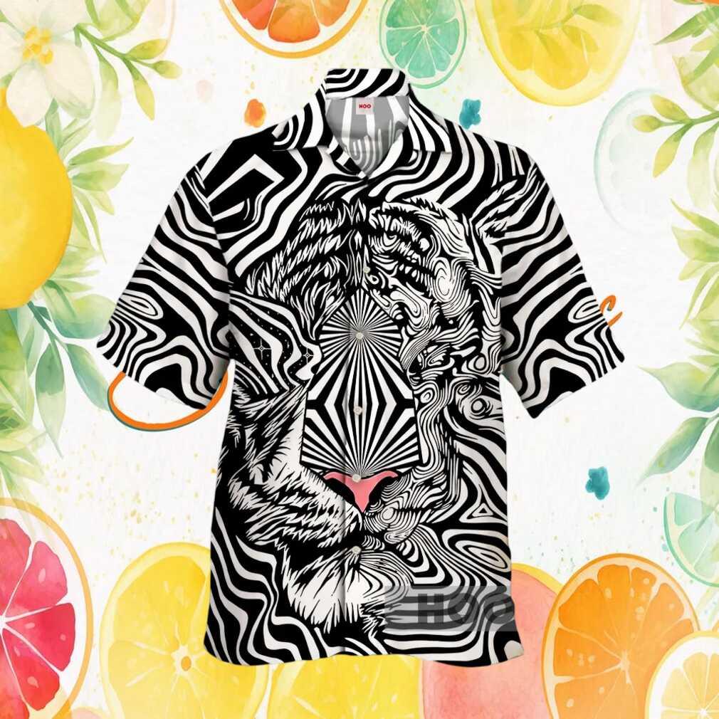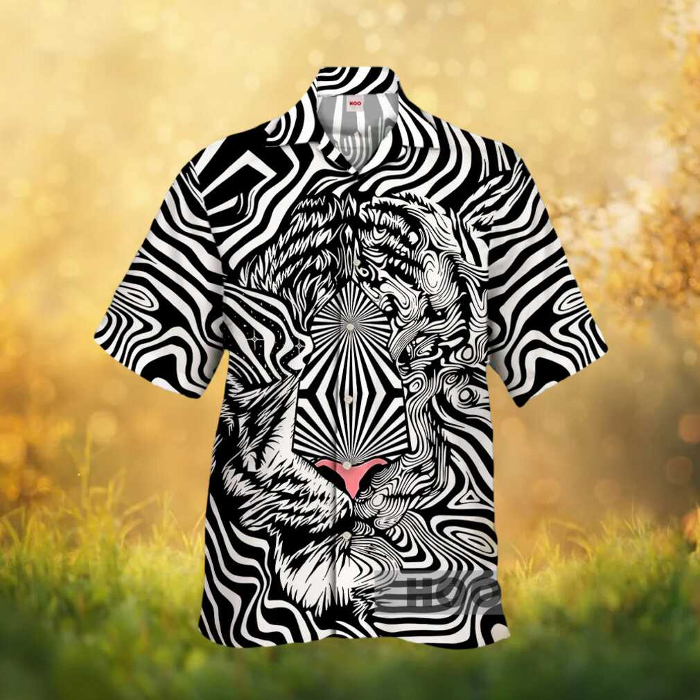 ()Optical Illusion Abstract Tiger Face Black & White Hawaiian Shirt, Treat yourself or make a great gift for your loved ones