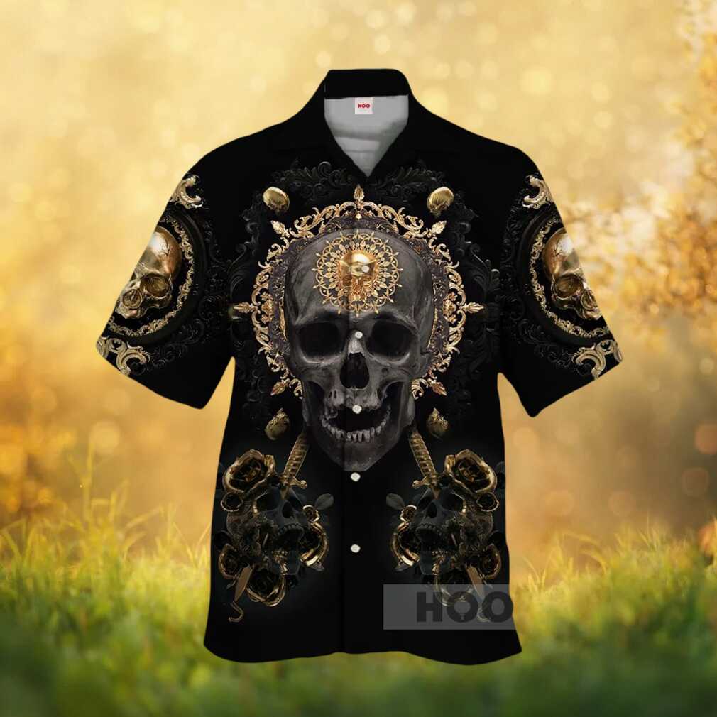 ()Ornate Gold & Black Baroque Skull Luxury Graphic Hawaiian Shirt, Treat yourself or make a great gift for your loved ones