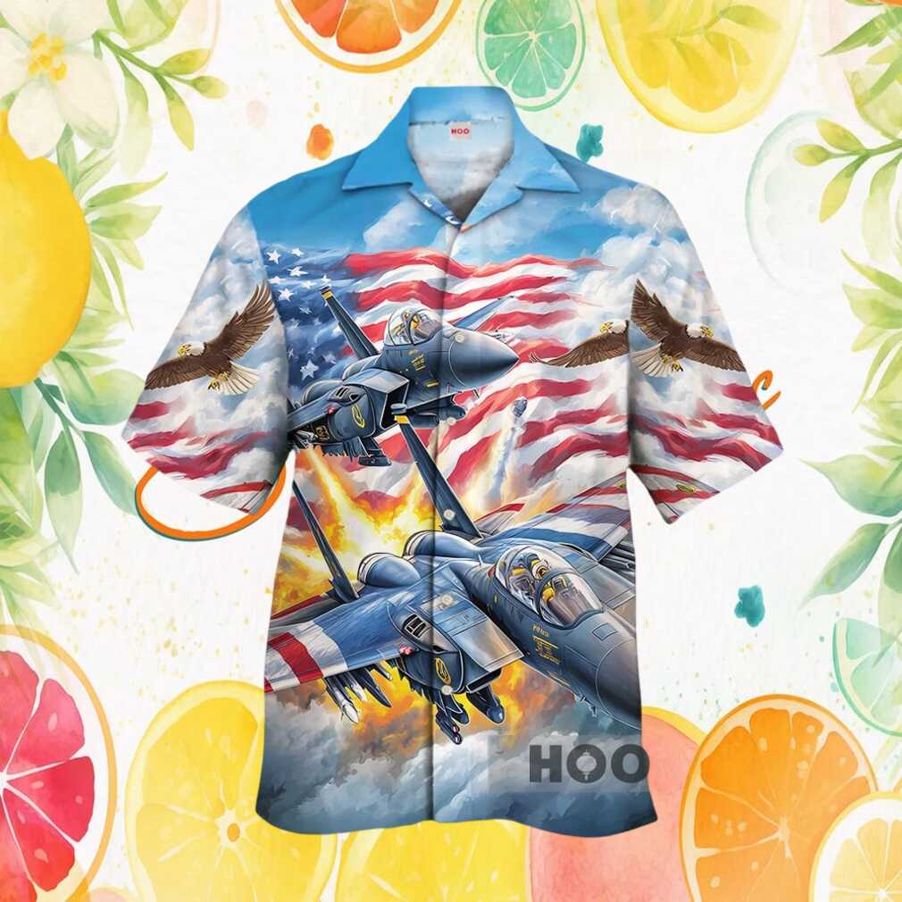 Patriotic Fighter Jet & Eagle Hawaiian Shirt USA Flag Military Aviation Hawaiian Shirt