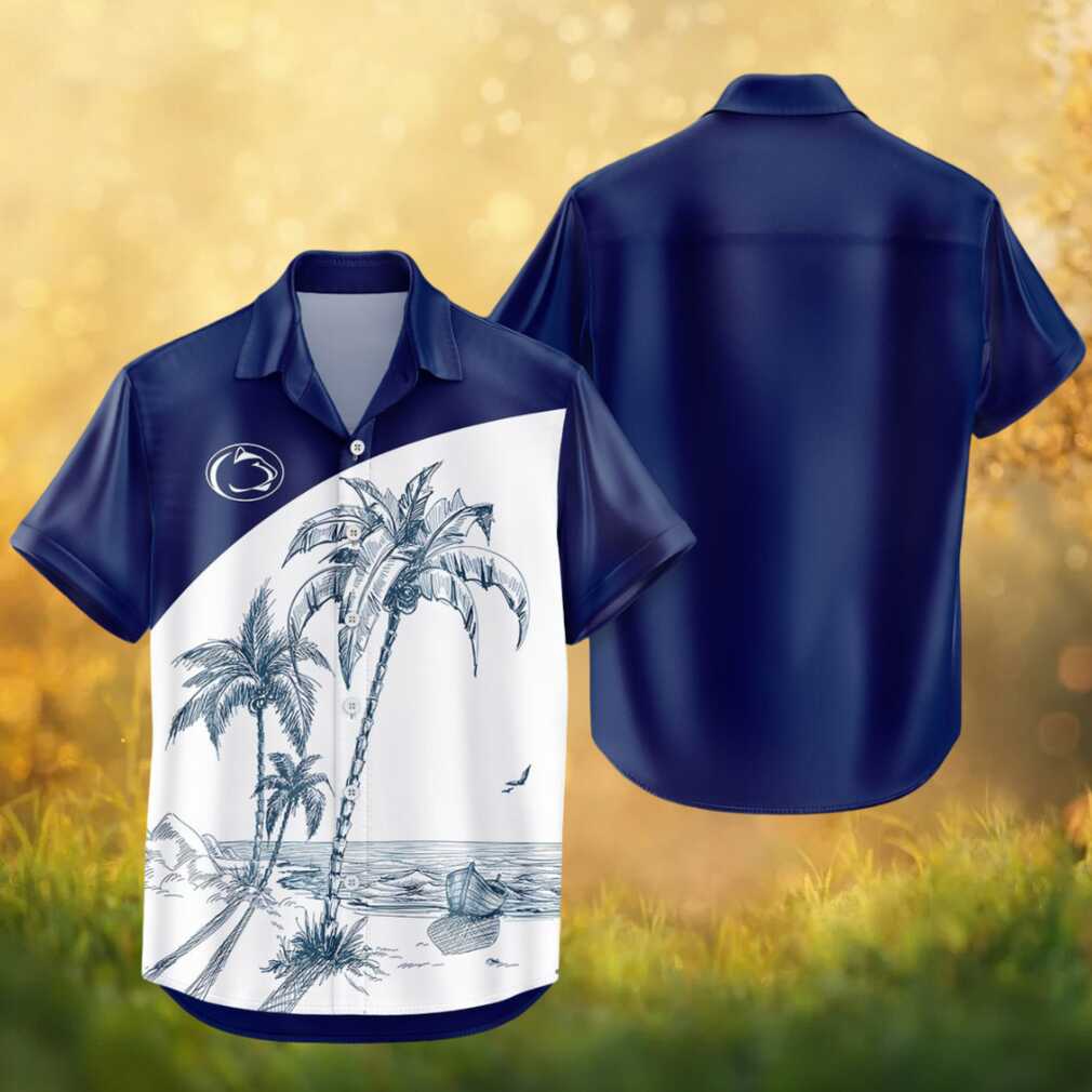 Penn State Nittany Lions Navy Palm Beach Sketch Hawaiian Shirt
