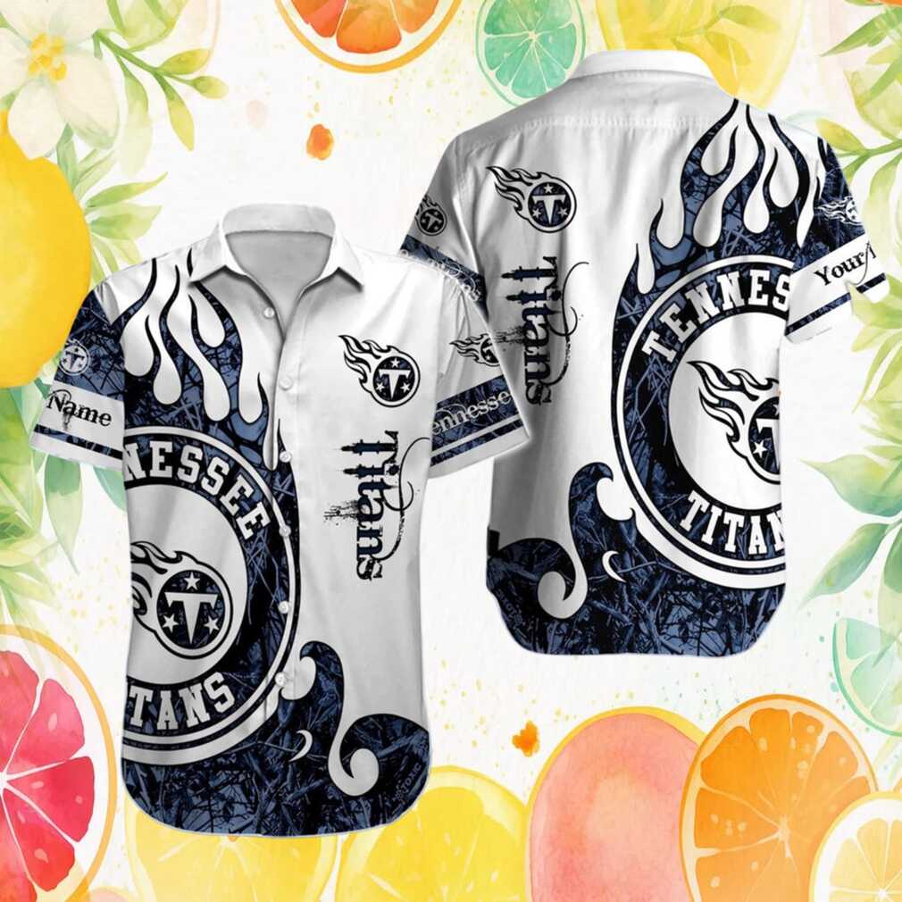 Personalised Tennessee Titans White & Navy Flame Logo Hawaiian Shirt