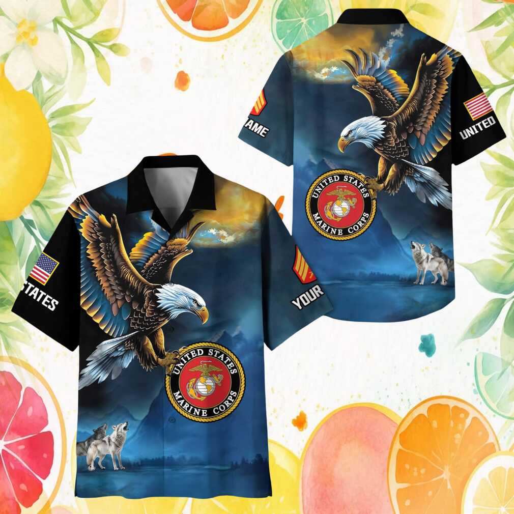 Personalizable US Marine Corps Eagle & Howling Wolves Hawaiian Shirt