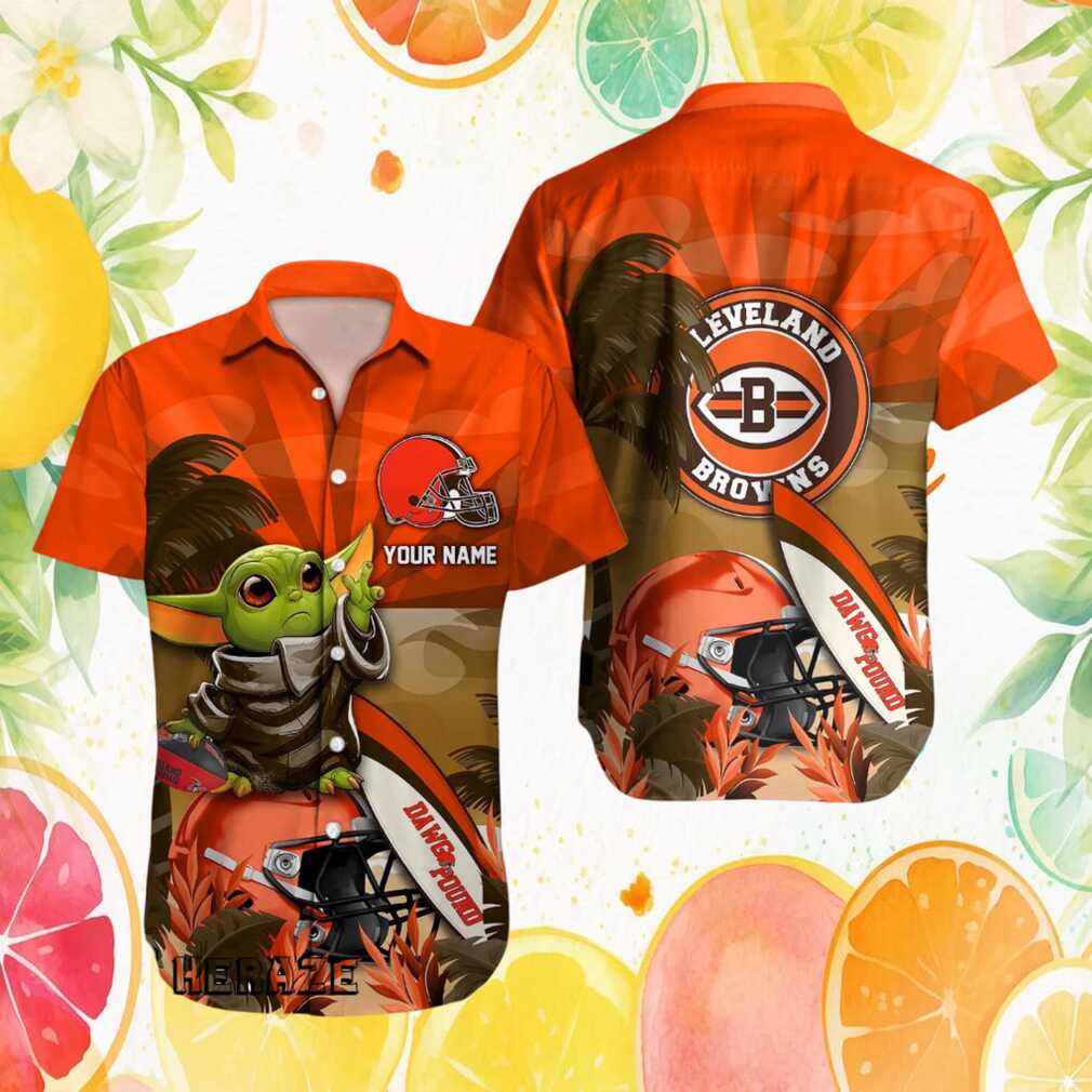 The Dawg Pound gets a galactic upgrade with adorable Baby Yoda (Grogu) in this personalized Cleveland Browns Hawaiian shirt. Grogu’s lovable face meets Browns team colors in a fun tropical design that can be customized with your name. A must-have for the Browns fan who loves Star Wars.