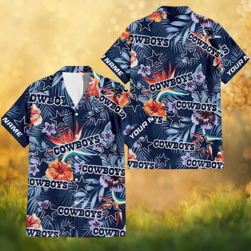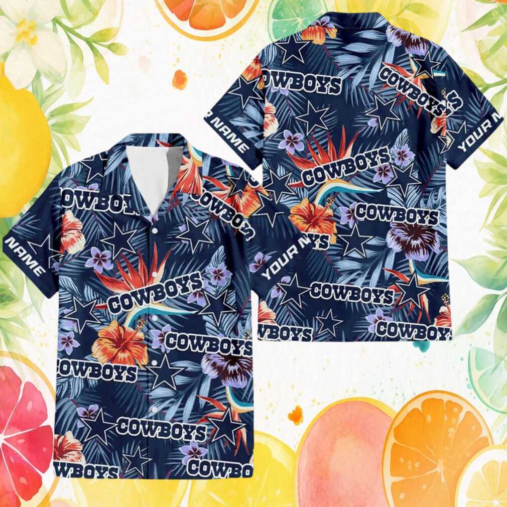 Personalized Dallas Cowboys Tropical Hibiscus Star Pattern Hawaiian Shirt