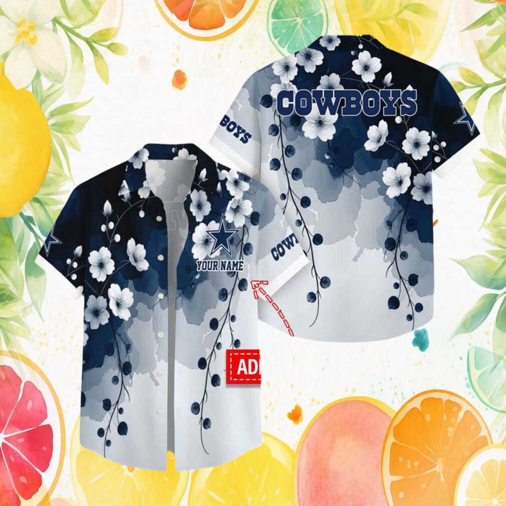 Personalized Dallas Cowboys Watercolor Cherry Blossom Hawaiian Shirt