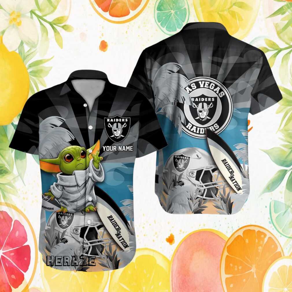 Personalized Las Vegas Raiders Grogu Baby Yoda Tropical NFL Hawaiian Shirt