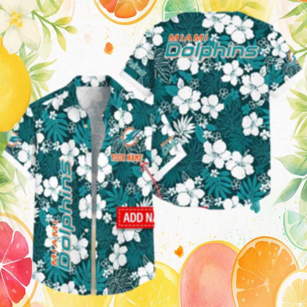 Personalized Miami Dolphins Hawaiian Shirt Teal & White Tropical Floral