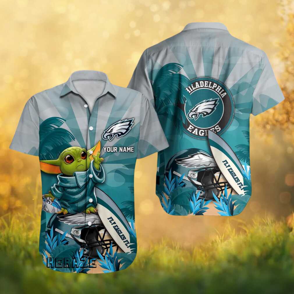 Personalized Philadelphia Eagles Grogu Baby Yoda Teal Beach Hawaiian Shirt