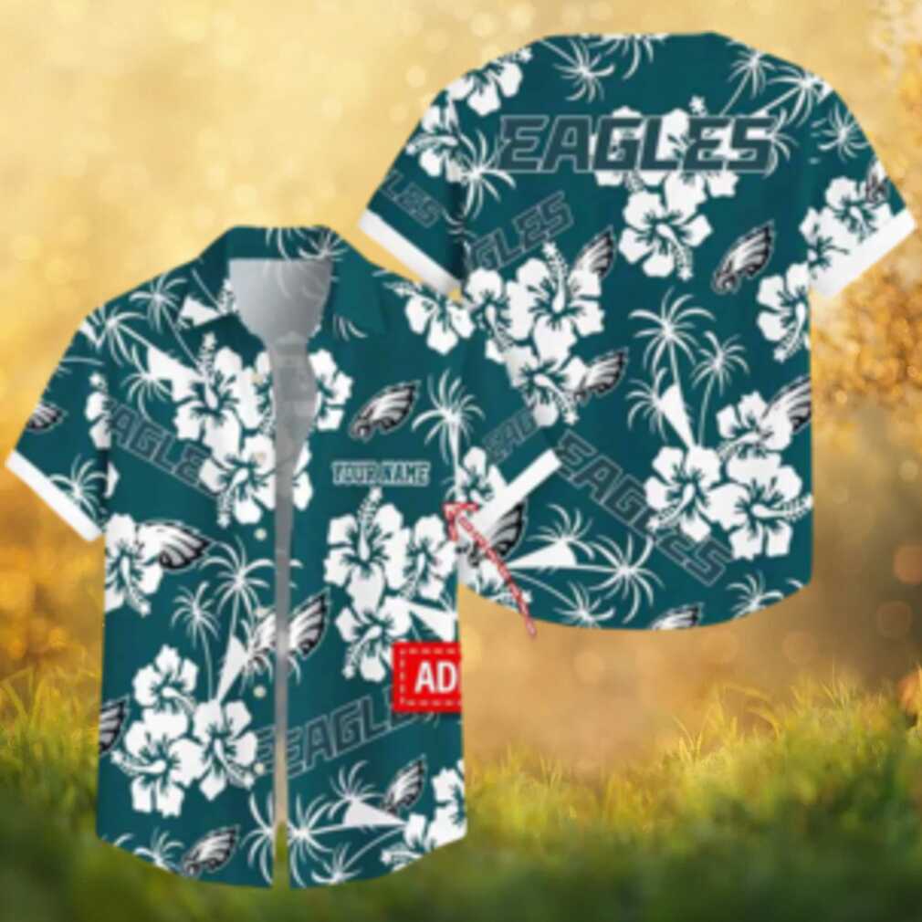 Personalized Philadelphia Eagles Hawaiian Shirt Tropical Hibiscus Teal