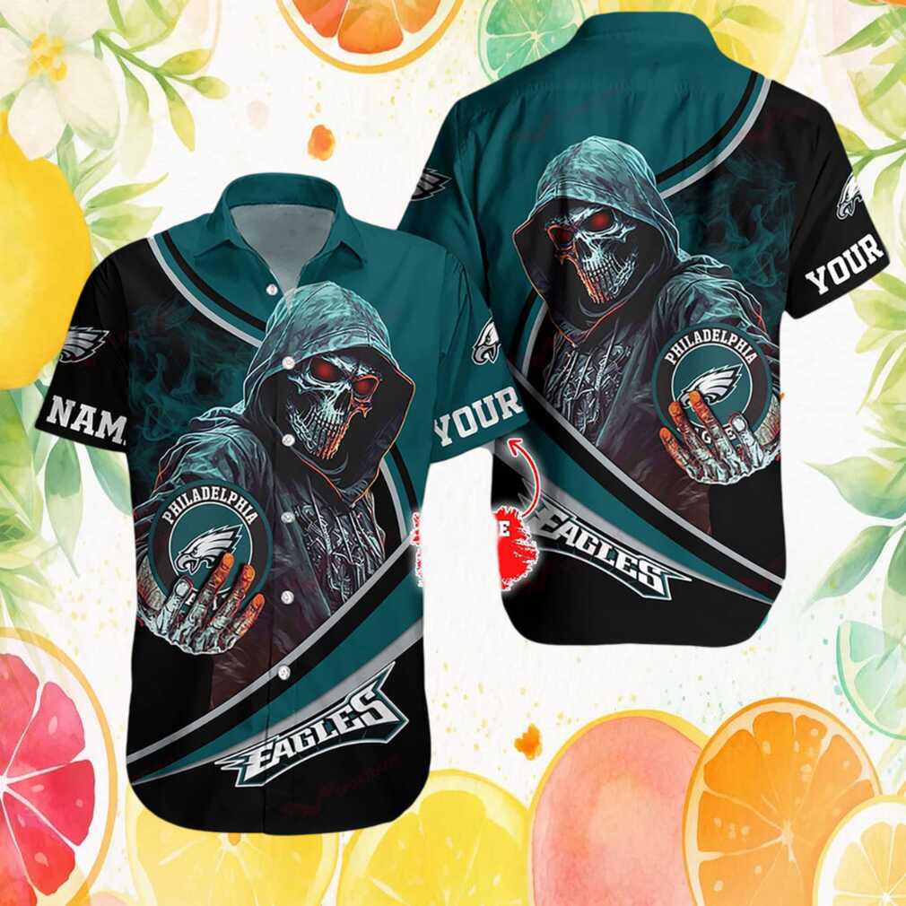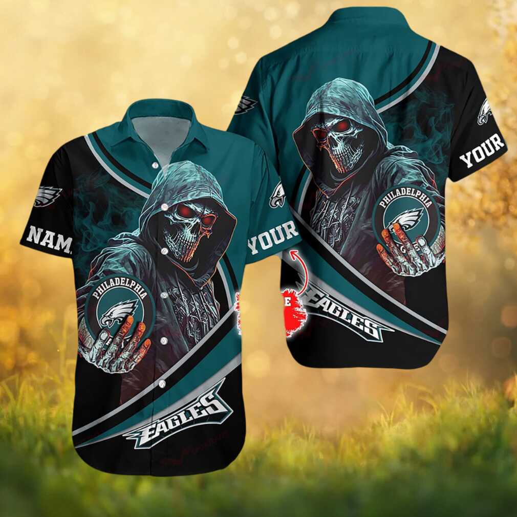 Personalized Philadelphia Eagles Skull Reaper Hawaiian Shirt Dark Fan Apparel