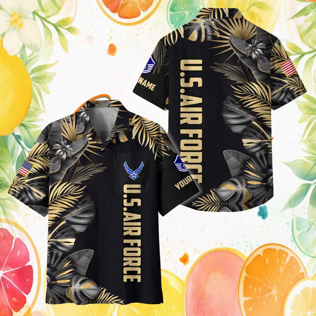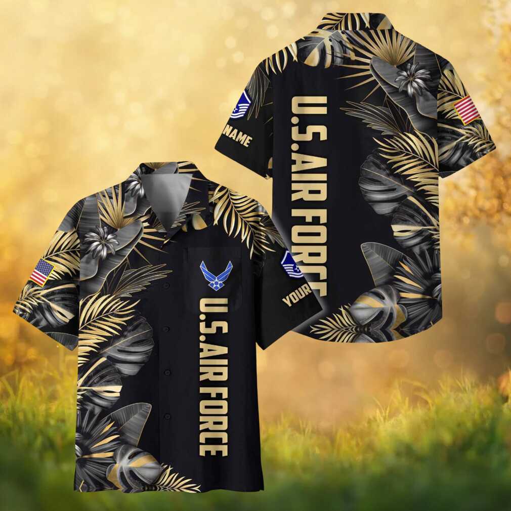 Personalized U.S. Air Force USAF Gold Palm Leaf Hawaiian Shirt