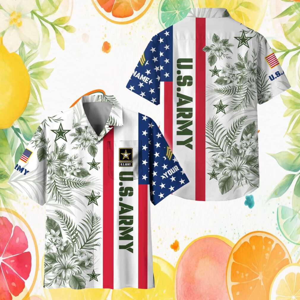 Personalized U.S. Army Floral American Flag Military Hawaiian Shirt
