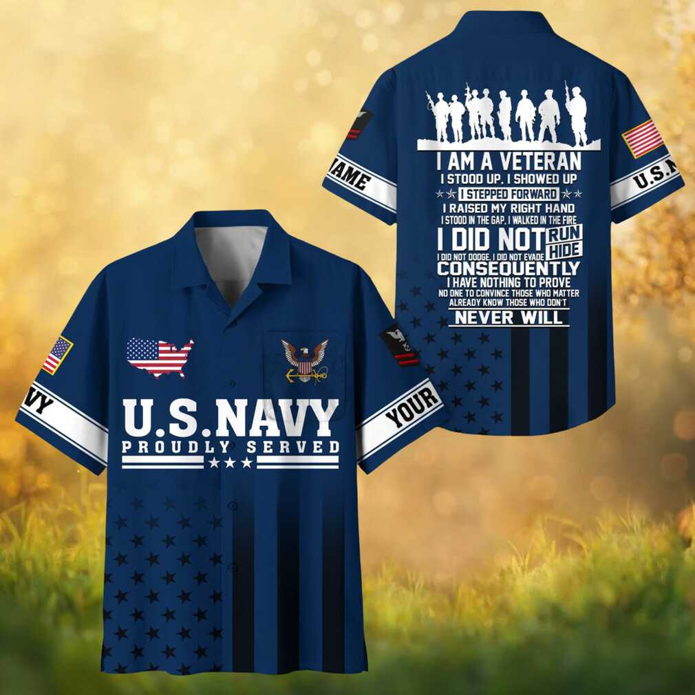 Personalized US Navy Proudly Served Veteran Hawaiian Shirt Navy Blue Military Apparel