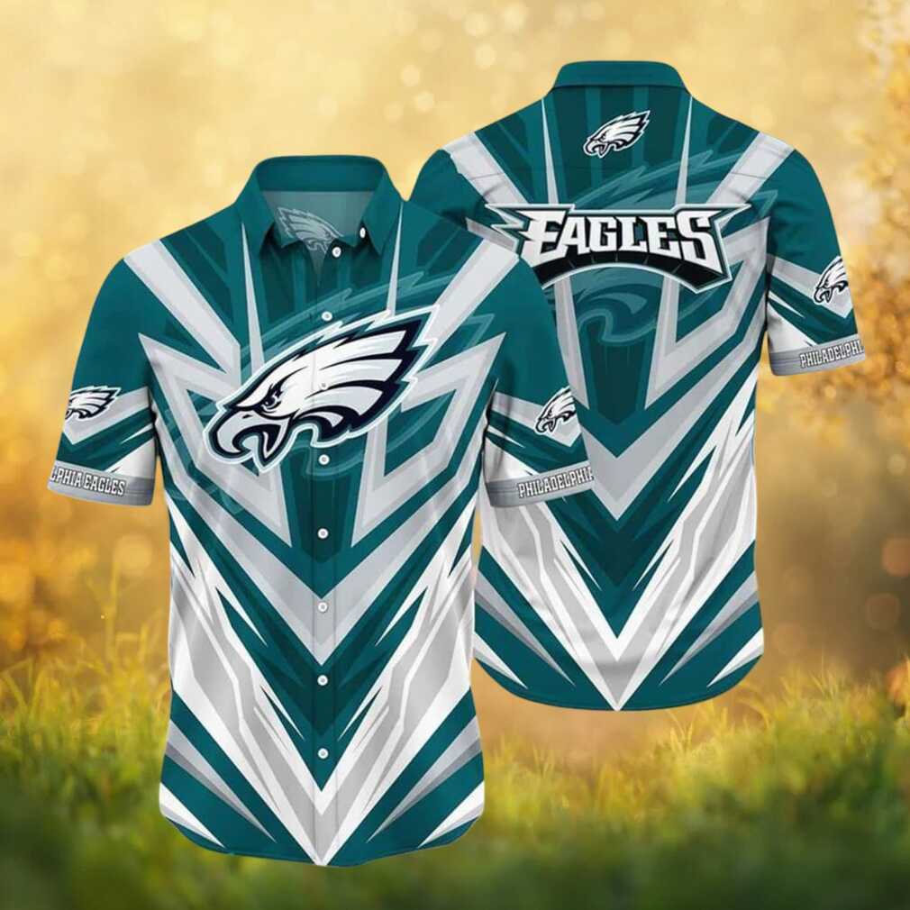 Sport a sleek, modern look with this Philadelphia Eagles Hawaiian shirt featuring bold geometric and abstract patterns. Sharp lines and team colors create a contemporary design that bridges athletic style and summer fashion.