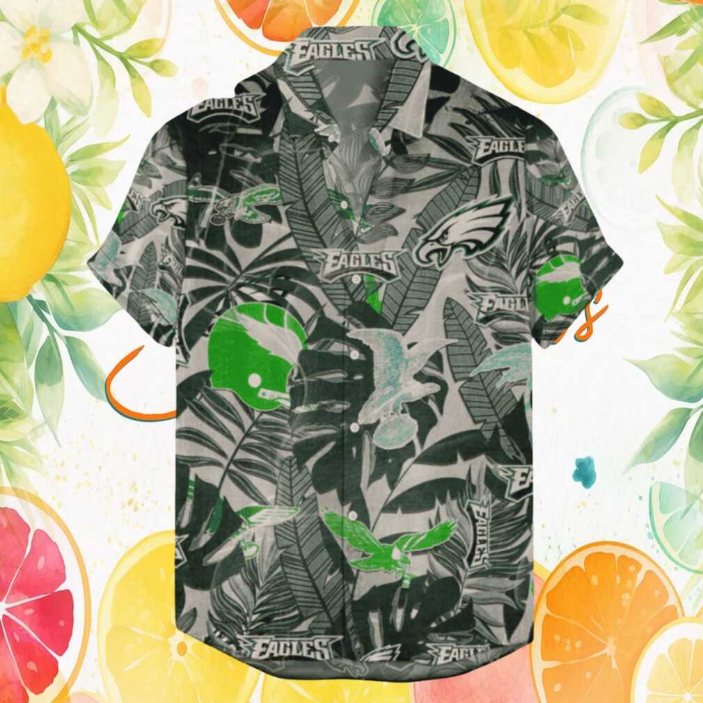 Philadelphia Eagles Grey Tropical Leaf & Helmet NFL Hawaiian Shirt