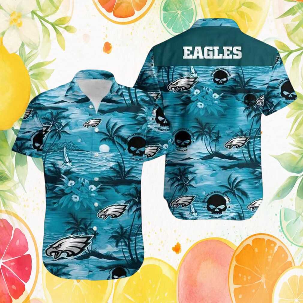 Philadelphia Eagles Midnight Ocean Skull Tropical Beach Hawaiian Shirt