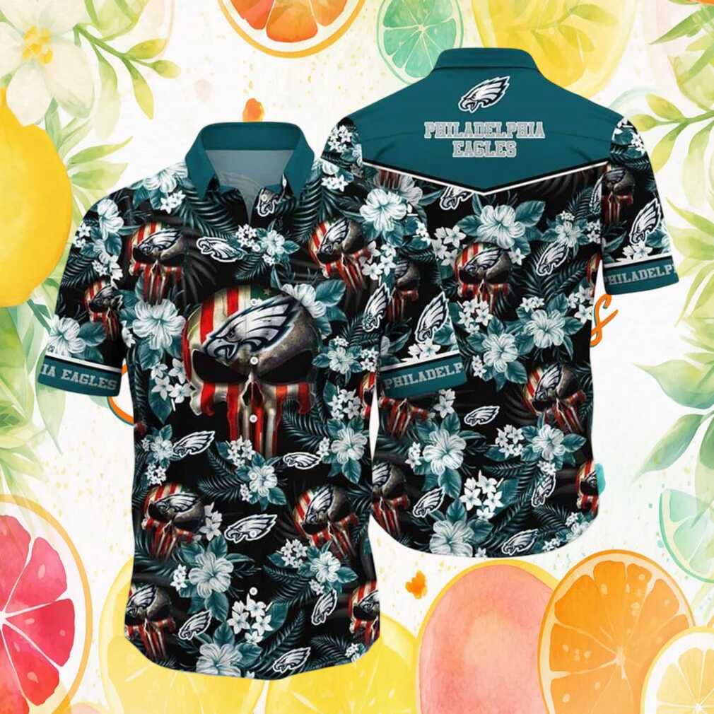 Philadelphia Eagles Skull Flag Floral Print Men’s Hawaiian Shirt