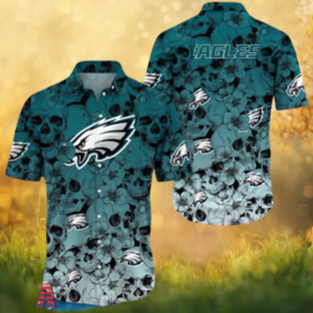 Philadelphia Eagles Skull & Flower Hawaiian Shirt Midnight Green