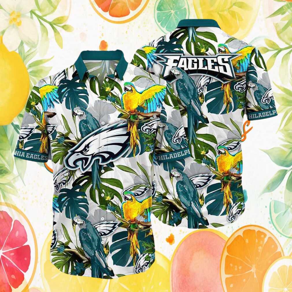 Philadelphia Eagles Tropical Parrot Hawaiian Shirt White Floral Summer Button Up