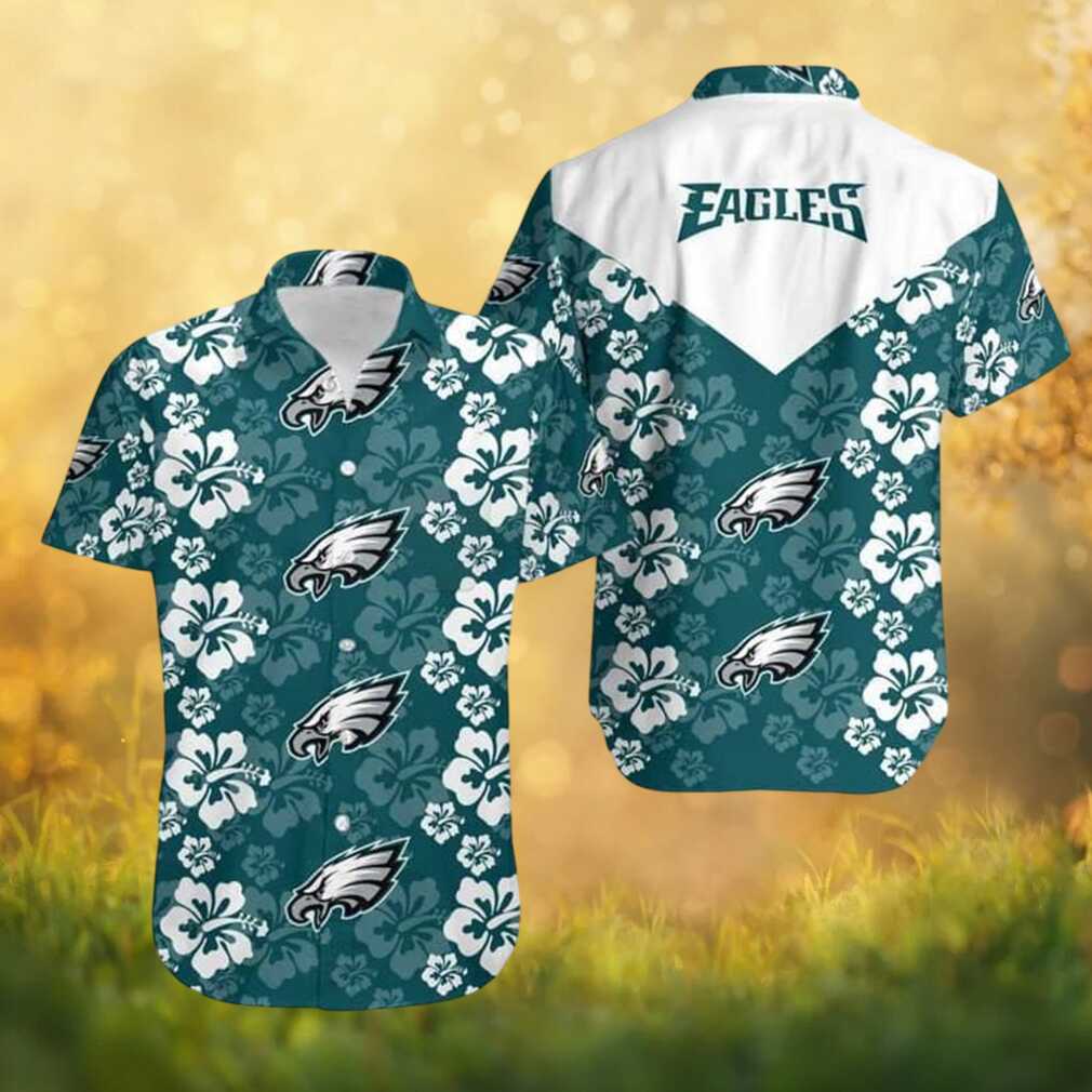 Show your Philadelphia Eagles pride in style with this eye-catching Hawaiian shirt featuring vibrant floral patterns featuring hibiscus and tropical blooms in midnight green and silver team colors. Crafted from lightweight, breathable fabric with a comfortable button-up design and short sleeves, this shirt is a stylish pick for any casual fan event or summer outing. Available in a full range of sizes, it makes a fantastic gift for any Eagles fan.