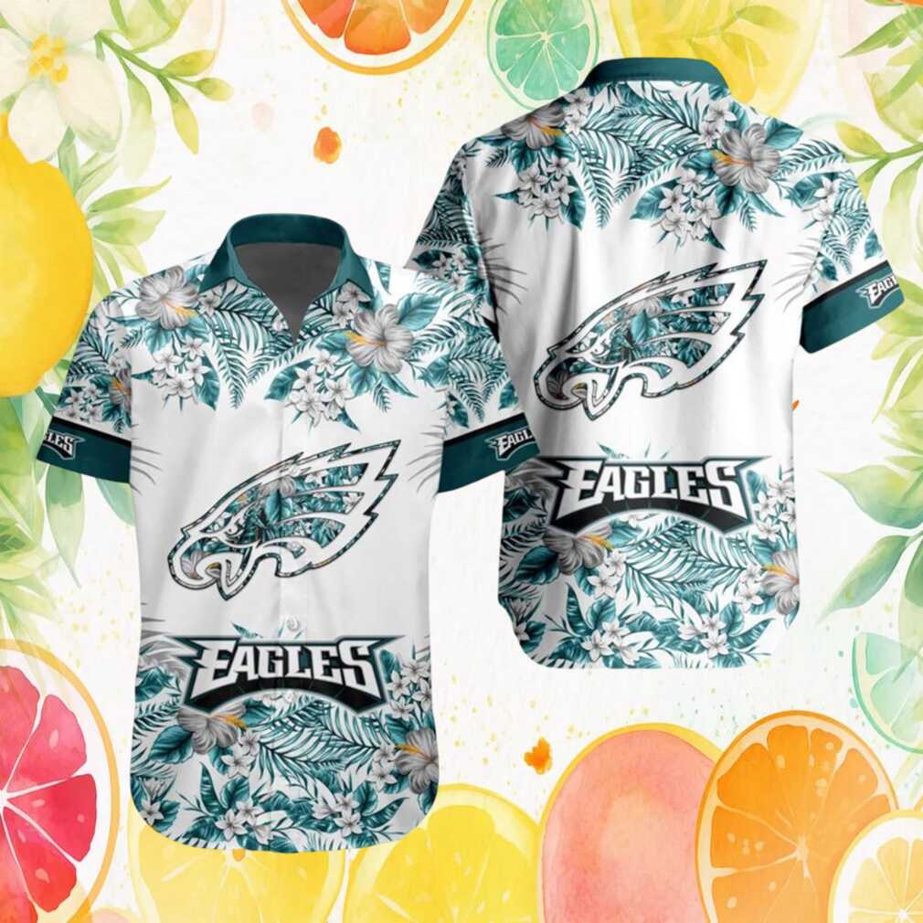 Philadelphia Eagles White Hibiscus Floral Hawaiian Shirt