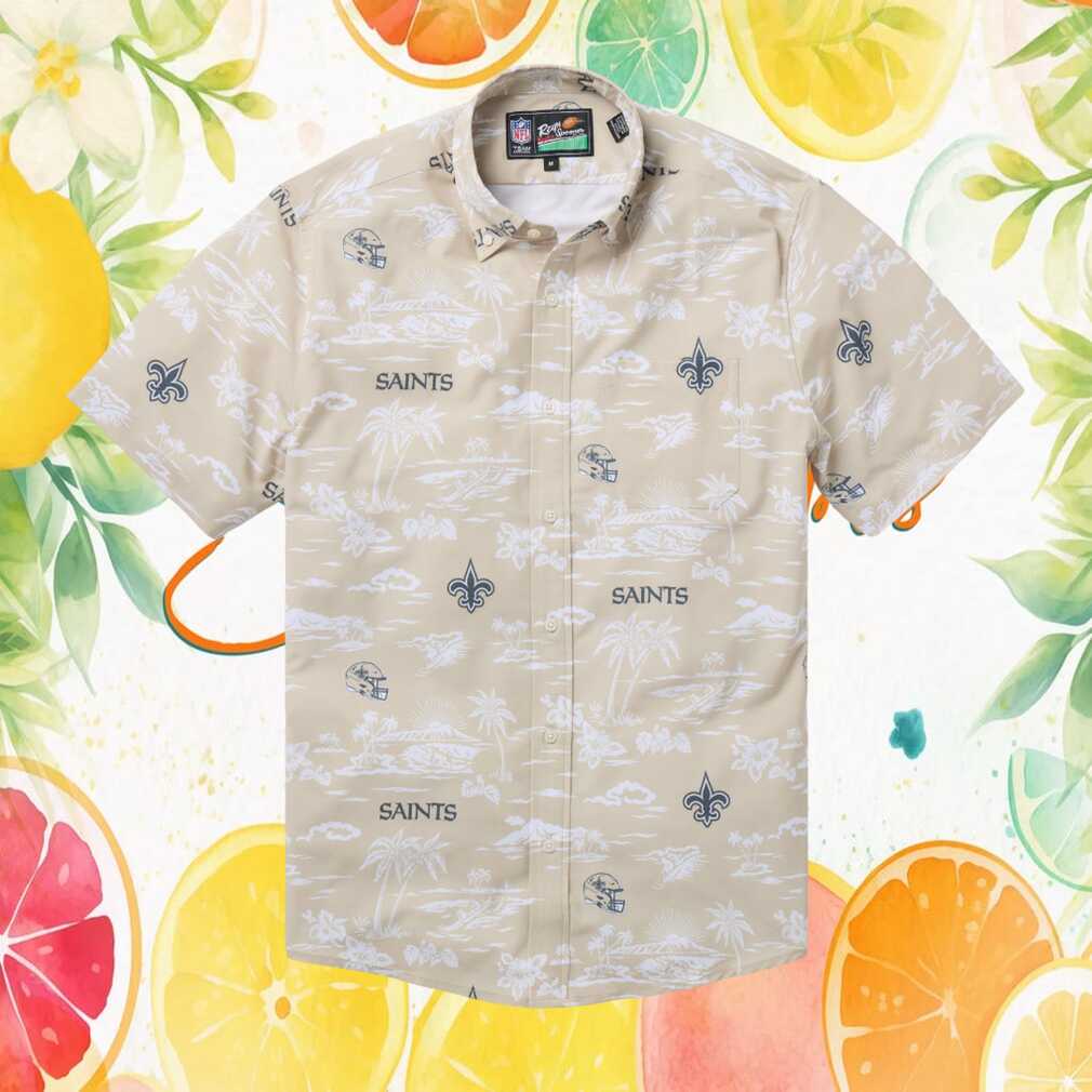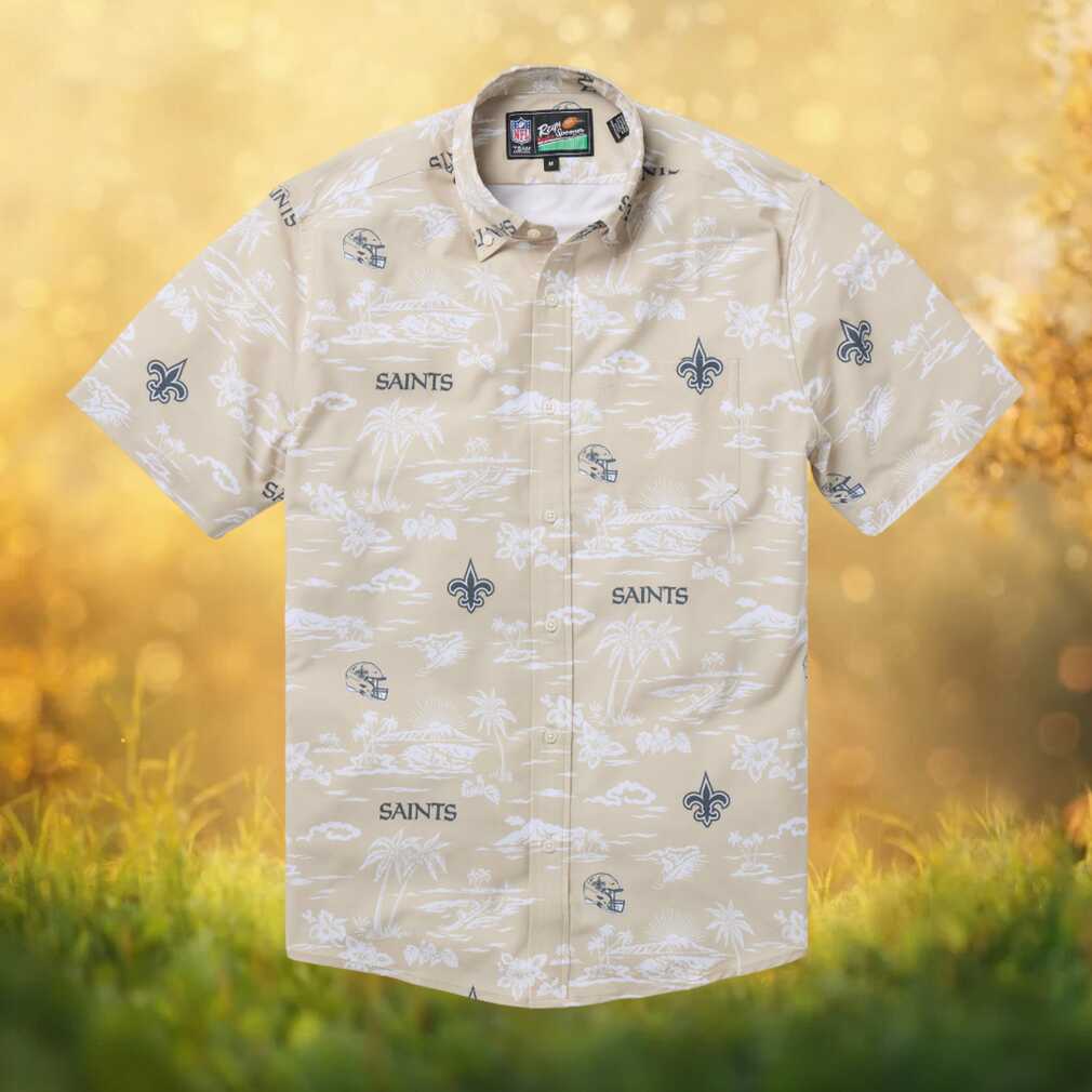 Rep your team in style with this officially licensed Reyn Spooner New Orleans Saints Hawaiian shirt. Featuring a stunning scenic/stadium print in tan, this button-down shirt blends authentic Hawaiian craftsmanship with passionate NFL fan spirit. Crafted from premium spoiler cloth for a comfortable, relaxed fit perfect for game days, tailgates, vacations, or any casual occasion. A must-have for any die-hard fan.