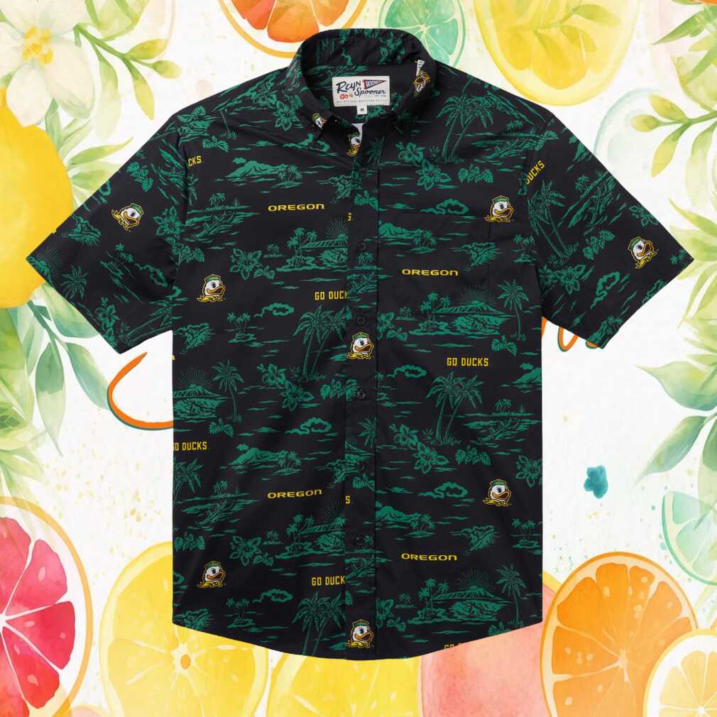 Reyn Spooner Oregon Ducks NCAA Black & Green Go Ducks Hawaiian Shirt