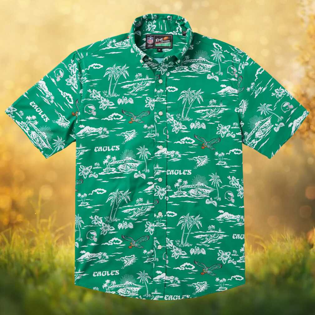 Rep your team in style with this officially licensed Reyn Spooner Philadelphia Eagles Hawaiian shirt. Featuring a stunning scenic/stadium print in green, this button-down shirt blends authentic Hawaiian craftsmanship with passionate NFL fan spirit. Crafted from premium spoiler cloth for a comfortable, relaxed fit perfect for game days, tailgates, vacations, or any casual occasion. A must-have for any die-hard fan.