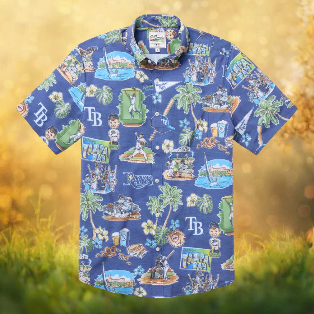 Rep your team in style with this officially licensed Reyn Spooner Tampa Bay Rays Hawaiian shirt. Featuring a stunning scenic/stadium print in multi-color, this button-down shirt blends authentic Hawaiian craftsmanship with passionate MLB fan spirit. Crafted from premium spoiler cloth for a comfortable, relaxed fit perfect for game days, tailgates, vacations, or any casual occasion. A must-have for any die-hard fan.