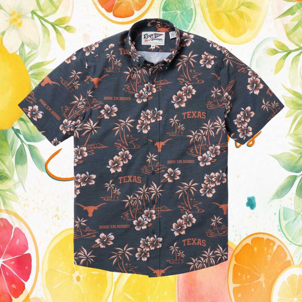 Rep your team in style with this officially licensed Reyn Spooner Texas Longhorns Hawaiian shirt. Featuring a stunning all-over print print in charcoal, this button-down shirt blends authentic Hawaiian craftsmanship with passionate NCAA fan spirit. Crafted from premium spoiler cloth for a comfortable, relaxed fit perfect for game days, tailgates, vacations, or any casual occasion. A must-have for any die-hard fan.