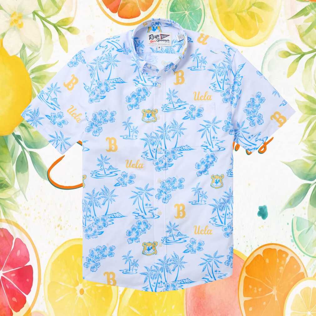 Rep your team in style with this officially licensed Reyn Spooner UCLA Bruins Hawaiian shirt. Featuring a stunning all-over print print in blue, this button-down shirt blends authentic Hawaiian craftsmanship with passionate NCAA fan spirit. Crafted from premium spoiler cloth for a comfortable, relaxed fit perfect for game days, tailgates, vacations, or any casual occasion. A must-have for any die-hard fan.