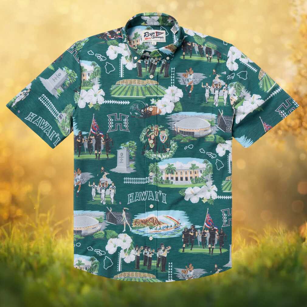 Rep your team in style with this officially licensed Reyn Spooner University of Hawaii Warriors Hawaiian shirt. Featuring a stunning scenic/stadium print in multi-color, this button-down shirt blends authentic Hawaiian craftsmanship with passionate Hawaiian Shirt fan spirit. Crafted from premium spoiler cloth for a comfortable, relaxed fit perfect for game days, tailgates, vacations, or any casual occasion. A must-have for any die-hard fan.